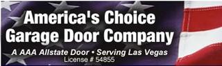 America's Choice Garage Door Company provides professional quality garage repair, installation and service for all makes and models garage doors. Free estimates with any garage door service provided and always 29.95 service calls. Is your garage door spring broken and need repair? Did you run into your garage door and need emergency service in Las Vegas? Did your garage door opener stop working? Is your garage door off track? Dou you need to replace your garage door panels? America's Choice Garage Door company has been in business for over 15 years and we are the garage door experts. We provide garage door openers, garage door repair for homes, residential and commercial installation of garage doors and openers. Providing garage doors, garage door repair, garage door installation, garage door openers, garage door remotes, garage door repair of broken springs, garage door emergency service, new garage doors in Las Vegas NV, Summerlin, Boulder City, North Las Vegas Nevada, Henderson NV, Paradise Nevada, Winchester Nevada, Whitney Nevada, Spring Valley Nevada, Sunrise Manor NV and surrounding areas.